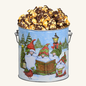 Johnson's Popcorn 1 Gallon Festive Gnomes Tin - Chocolate Drizzle